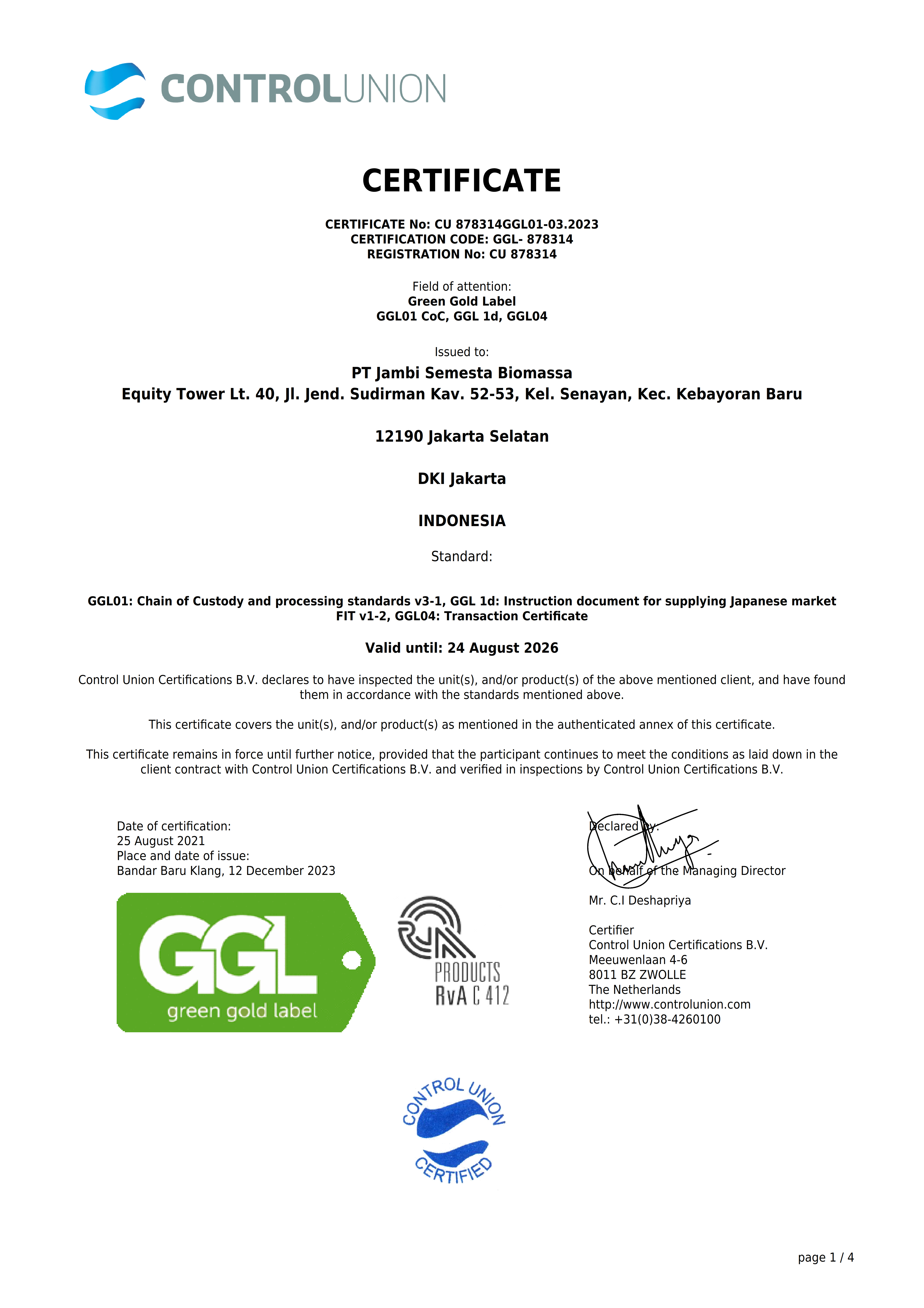 GREEN GOLD LABEL CERTIFIED
